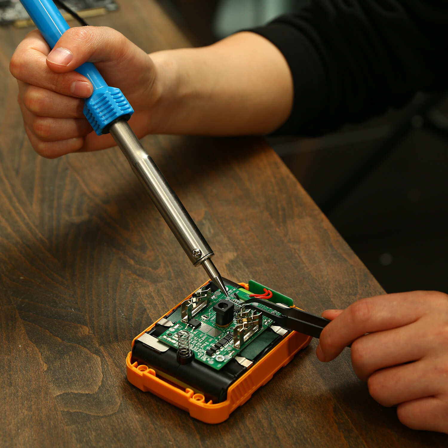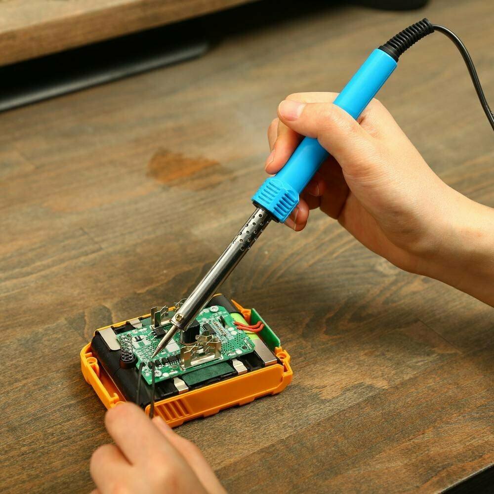 | Минусы: | Жало паяльника круглое, маленькое, не удобное |