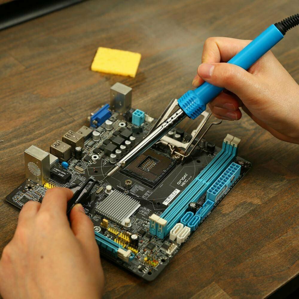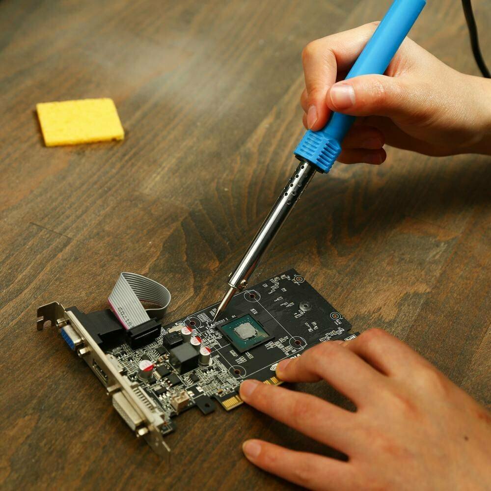 | Комплектация | паяльник 80 Вт, 220 В (1 шт.), подставка для паяльника (1 шт.), губка для очистки паяльного жала (1 шт.), пинцет (1 шт.), припой на катушке (1 шт.), канифоль (1 упак.) |
