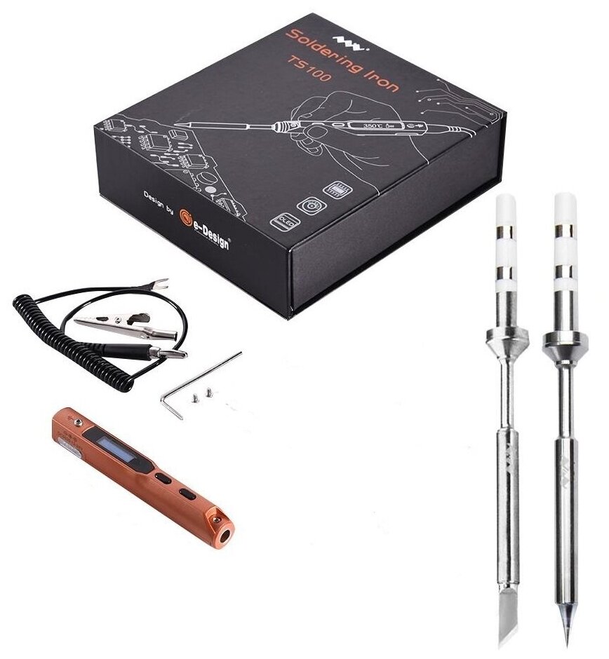 | Комплектация | цифровой паяльник Minidso TS100 (адаптер питания в комплект не входит), шестигранный ключ, паяльное жало TS-B2, паяльное жало TS-K, кабельный зажим, инструкция по эксплуатации |