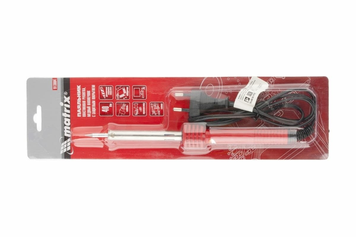 Паяльник, пластиковая рукоятка,медный наконечник с долговечным защитным покрытием,220 В,40W Matrix [913004]