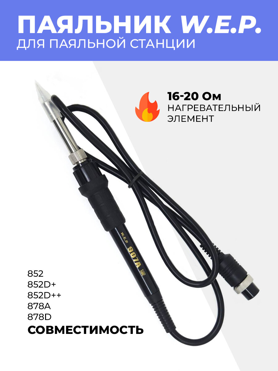 Паяльник для паяльной станции W.E.P. 852D+/852D++/878A/878D (907А) интересное:
