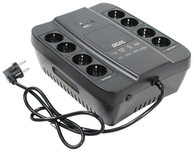 | Минусы: | тяжеловат, но это нормально для ИБП, нельзя использовать приборы типа утюга, приходится тянуть удлинитель от другой розетки |