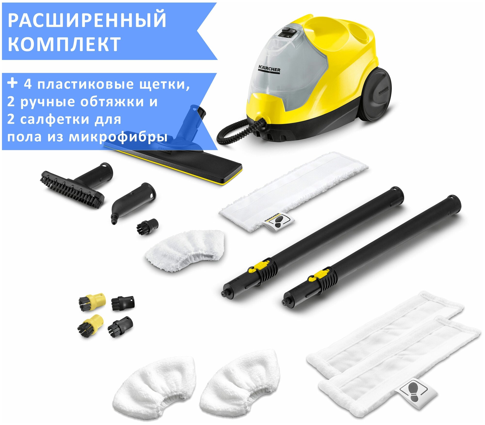 Купить Пароочиститель Karcher SC 4 EasyFix + аксессуары VELER: 2 салфетки для пола, 2 ручные обтяжки и 4 пластиковые щёточки