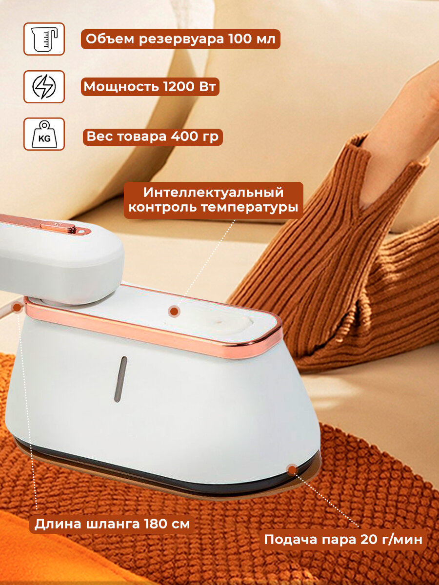 Ручной отпариватель для одежды, дорожный, с насадкой щетка, щеткой белый, парогенератор для вещей, паровой, электрический, для дома