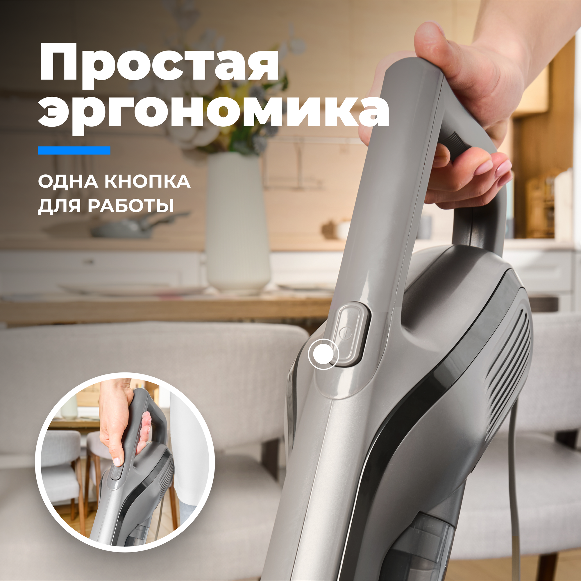 | Отзыв: | Доволен покупкой. Не громоздкий и не тяжёлый. Удобно и быстро навести порядок, особенно на кухне, где много ножек от стола и стульев и домочадцев) |