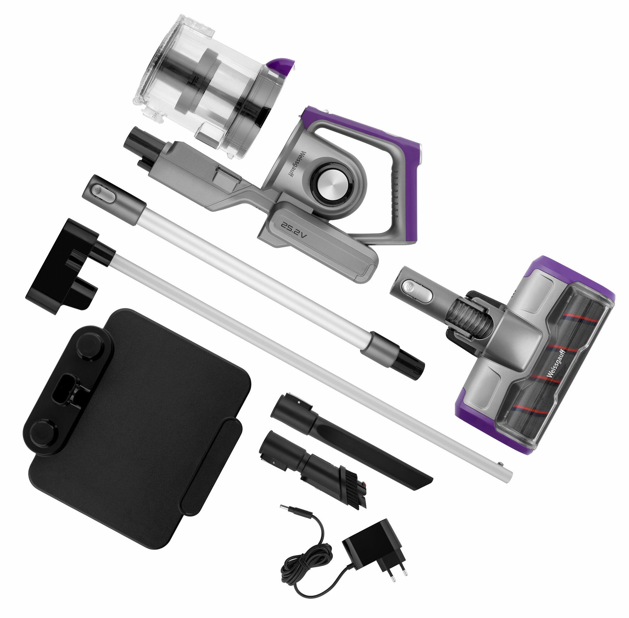 Купить Пылесос Weissgauff V18 BLDC Turbo Soft Brush, серый/фиолетовый