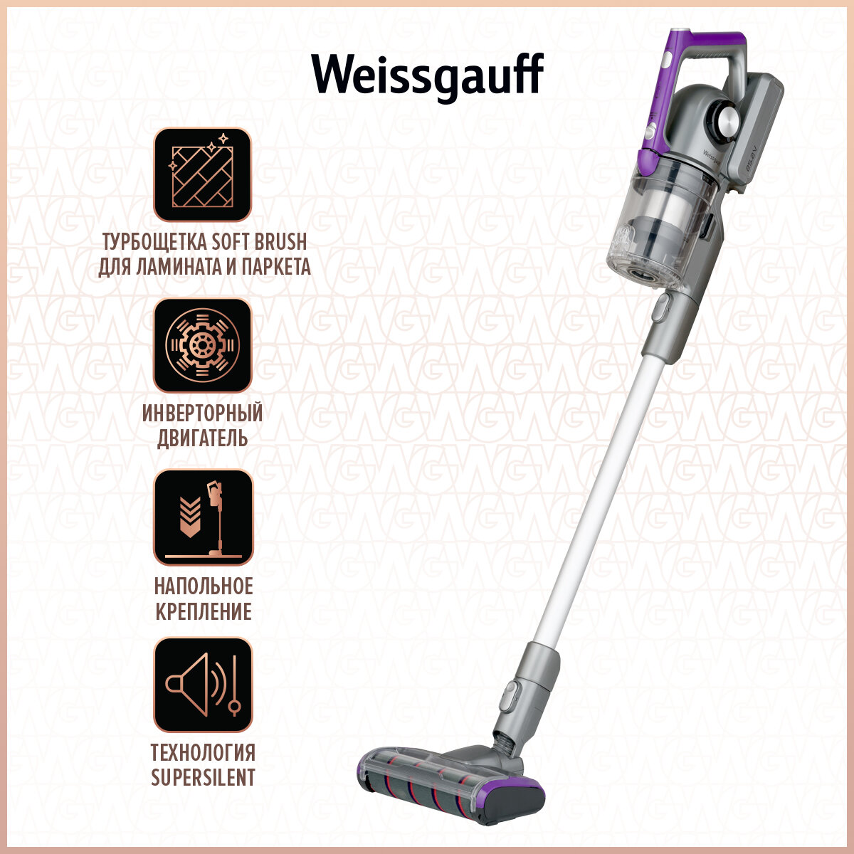 Пылесос Weissgauff V18 BLDC Turbo Soft Brush, серый/фиолетовый интересное: