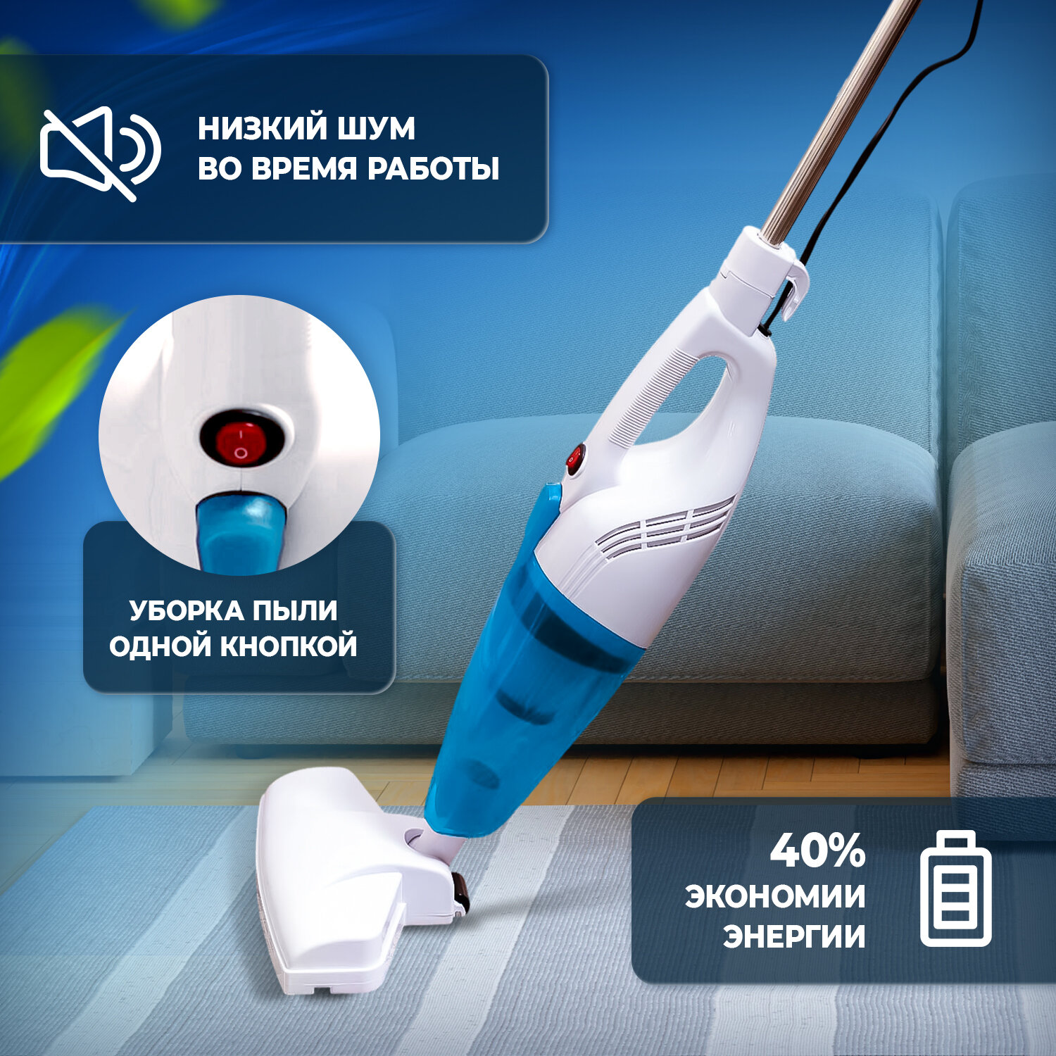 Вертикальный пылесос для дома/ Пылесос для пола и мебели 2в1 (вертикальный + ручной) / С контейнером для пыли (без мешка), цвет синий интересное: