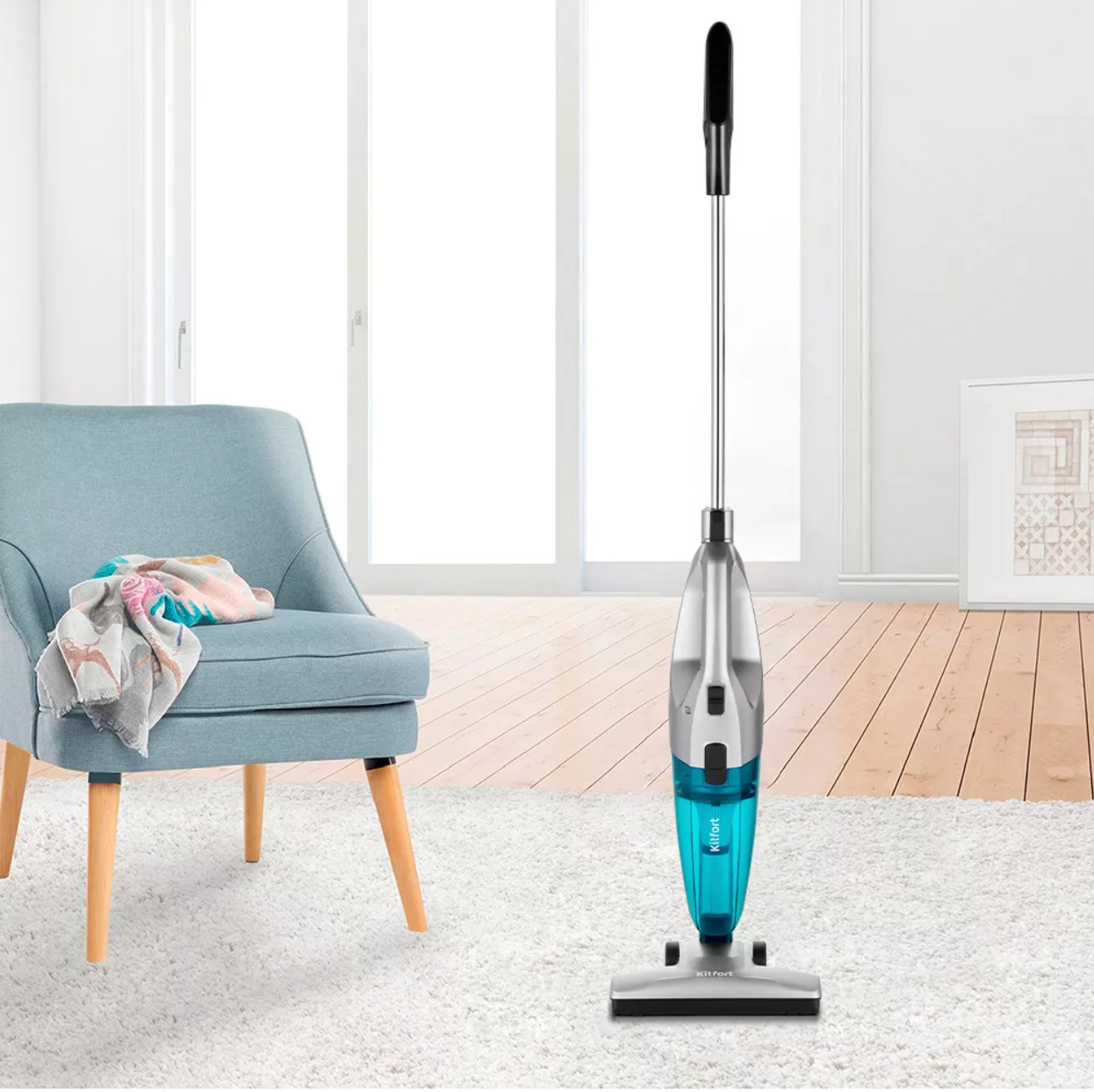 Ручной пылесос (handstick) KitFort КТ-5146, 600Вт, серебристый/голубой