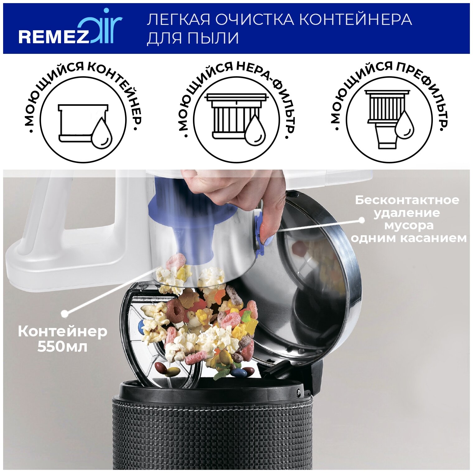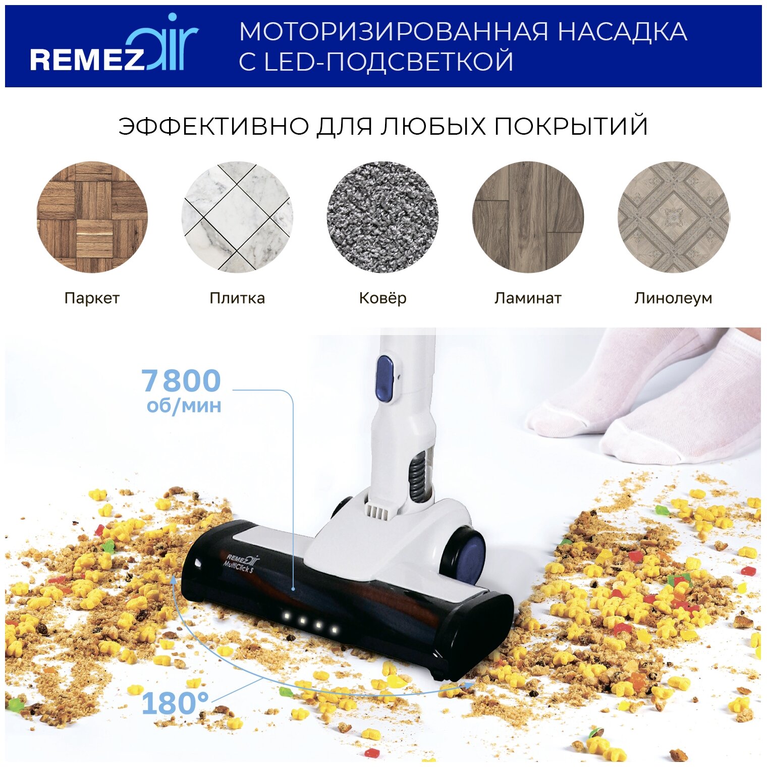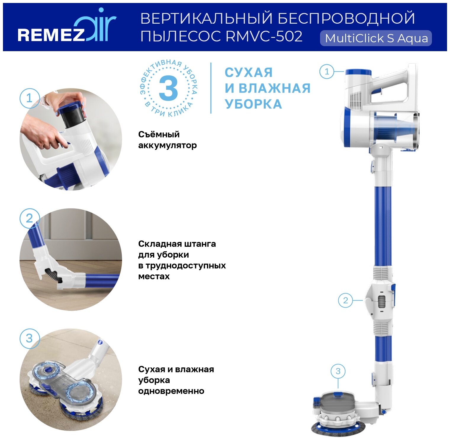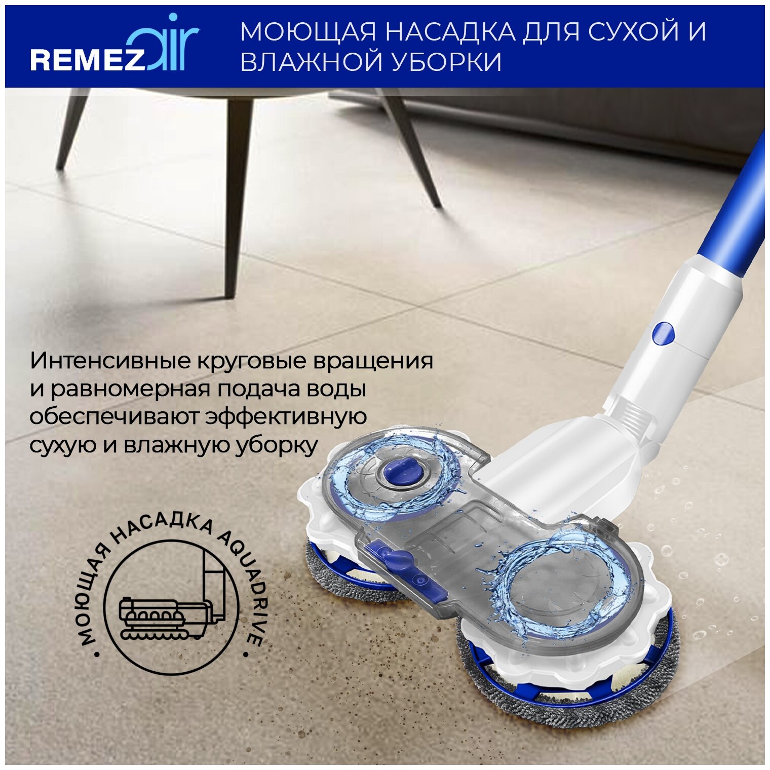 Вертикальный пылесос REMEZAIR RMVC-502 160 Вт, белый/синий, питание от аккумулятора (RMVC-502)