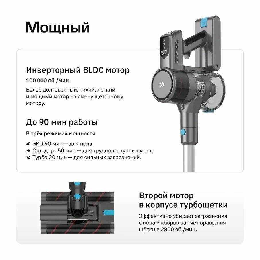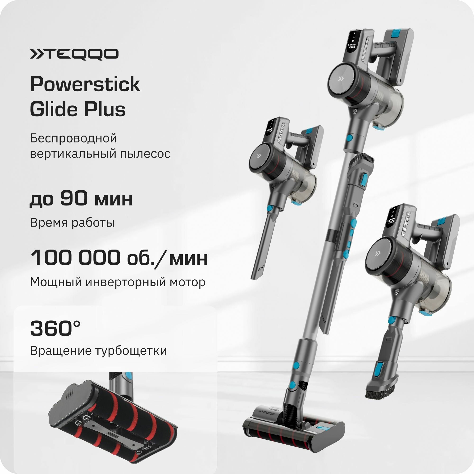 Беспроводной вертикальный пылесос Teqqo Powerstick Glide Plus интересное: