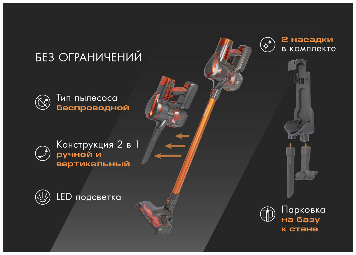 Купить Пылесос беспроводной Endever SkyClean VC-301 (90244) темно-серый/оранжевый