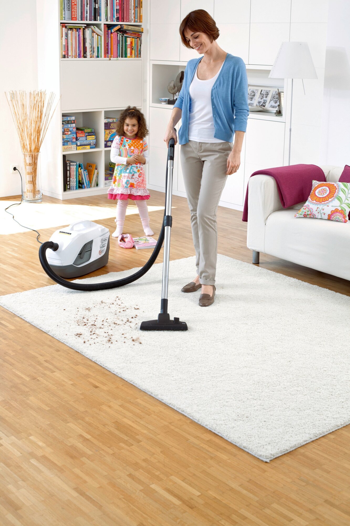 Пылесос для дома Karcher DS 6 1.195-250.0, с аквафильтром, многоступенчатая система фильтрации, 3 насадки, 650 Вт, 80 Дб, в комплекте пеногаситель FoamStop, белый/черный