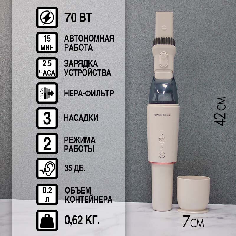 Портативный ручной пылесос 2в1 Morphy Richards с функцией ионизатора воздуха, перламутровый интересное: