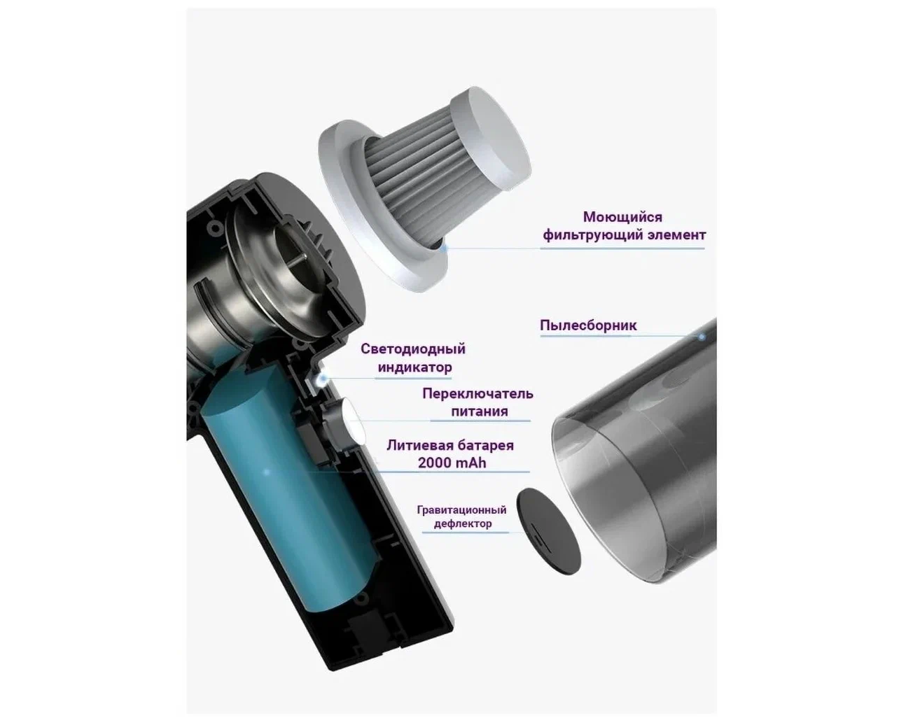 Беспроводной ручной мини пылесос автомобильный портативный 2 в 1 USB с аккумулятором (чёрный) интересное: