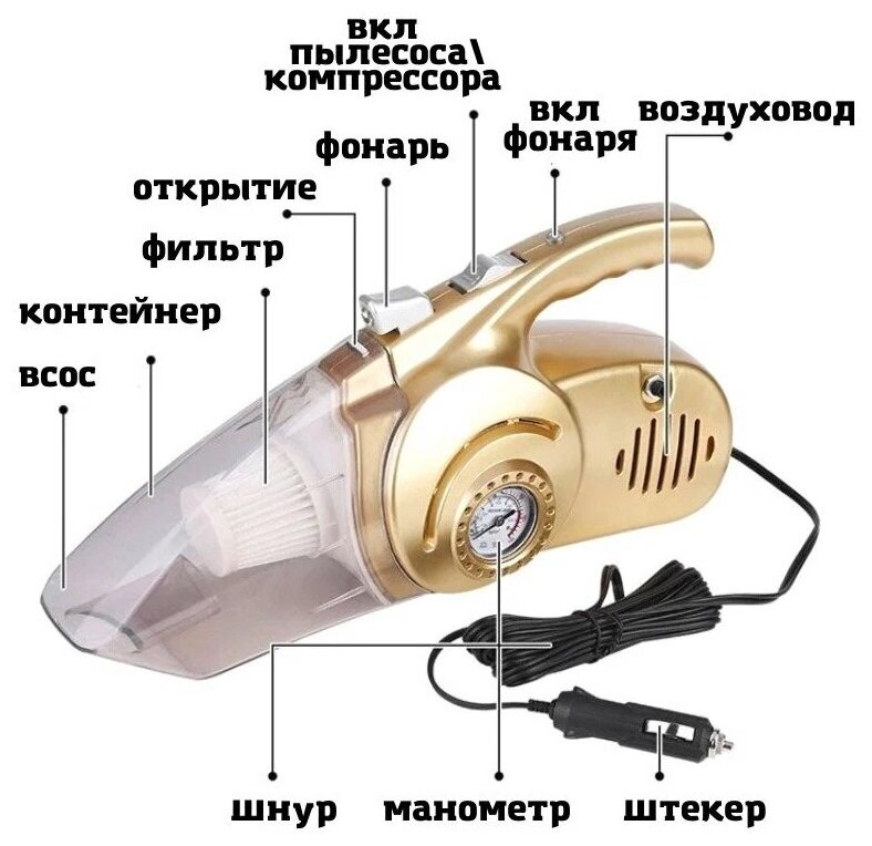 Мощный автомобильный пылесос, ручной для автомобиля ,проводной, автопылесос подарок мужчине интересное: