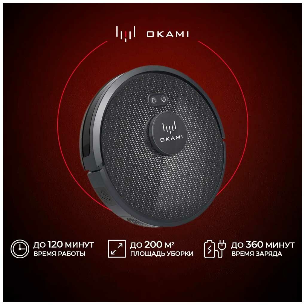 OKAMI Робот-пылесос R117: Оками 6500 Па, подвижная турбощетка, автоматическая уборка с влажной протиркой и увеличение мощности на коврах