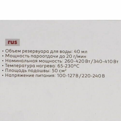 | Дополнительные функции | постоянная подача пара / сухая глажка |