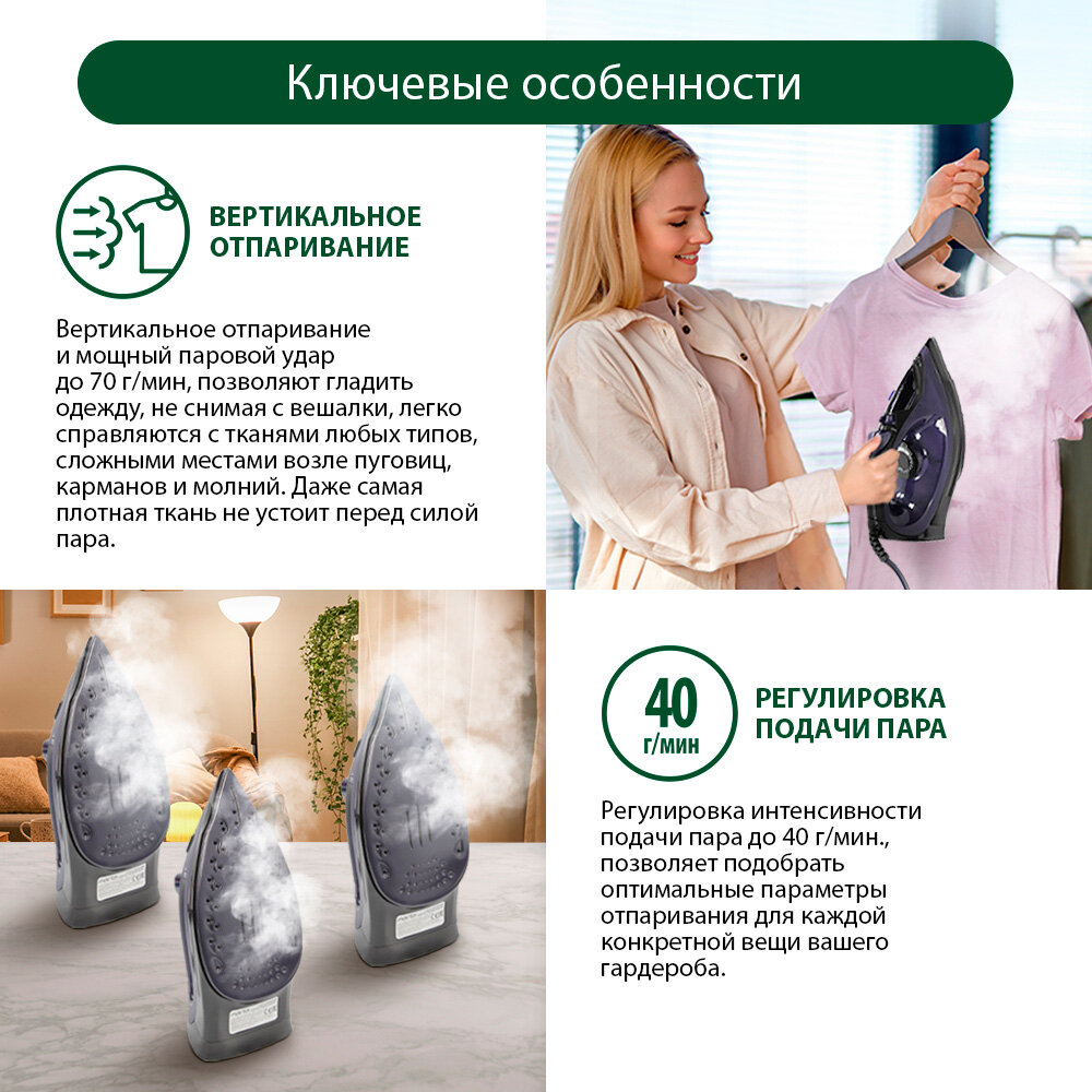 | Плюсы: | легкий, компактный, хорошо отпаривает |