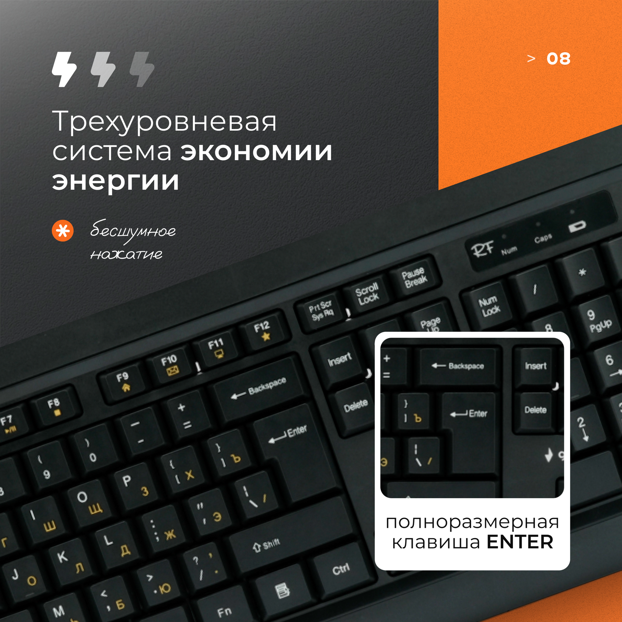СохранитьБеспроводной комплект клавитура + мышь Gembird KBS-8001 интересное: