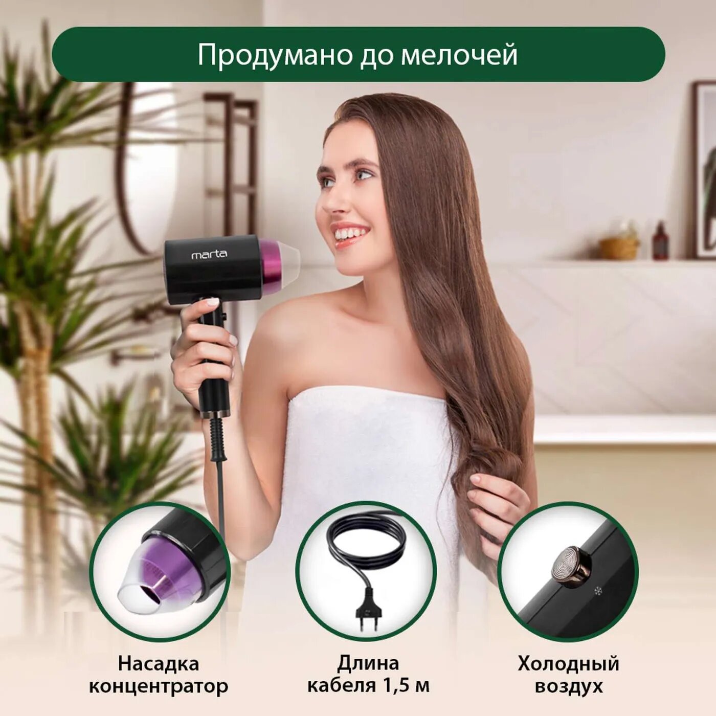 СохранитьФен MARTA MT-1263 темная фуксия интересное: