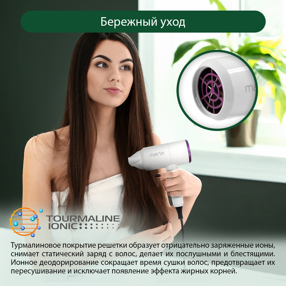 Фен MARTA MT-1267 Технология tourmaline ionic светлый чароит