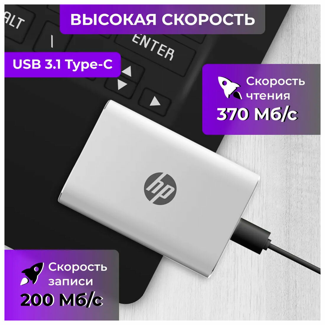 Внешний диск HP P500 500 Гб, USB 3.2 gen.2 [R/W - 370/200 MB/s] серебряный (7PD55AA)