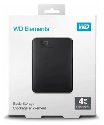 Внешний жесткий диск Western Digital WD Elements Portable, 4 ТБ, USB 3.0 (WDBU6Y0040BBK-WESN) черный