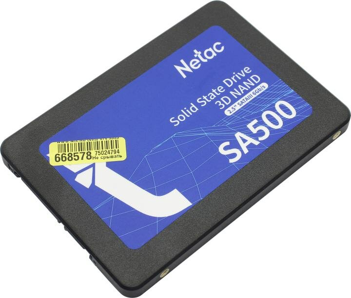 Накопитель Netac SA500 NT01SA500-480-S3X SSD, 2.5", 480Gb, SATA III, чтение: 520 Мб/сек, запись: 450 Мб/сек, 3D NAND, 240 TBW, NVMe