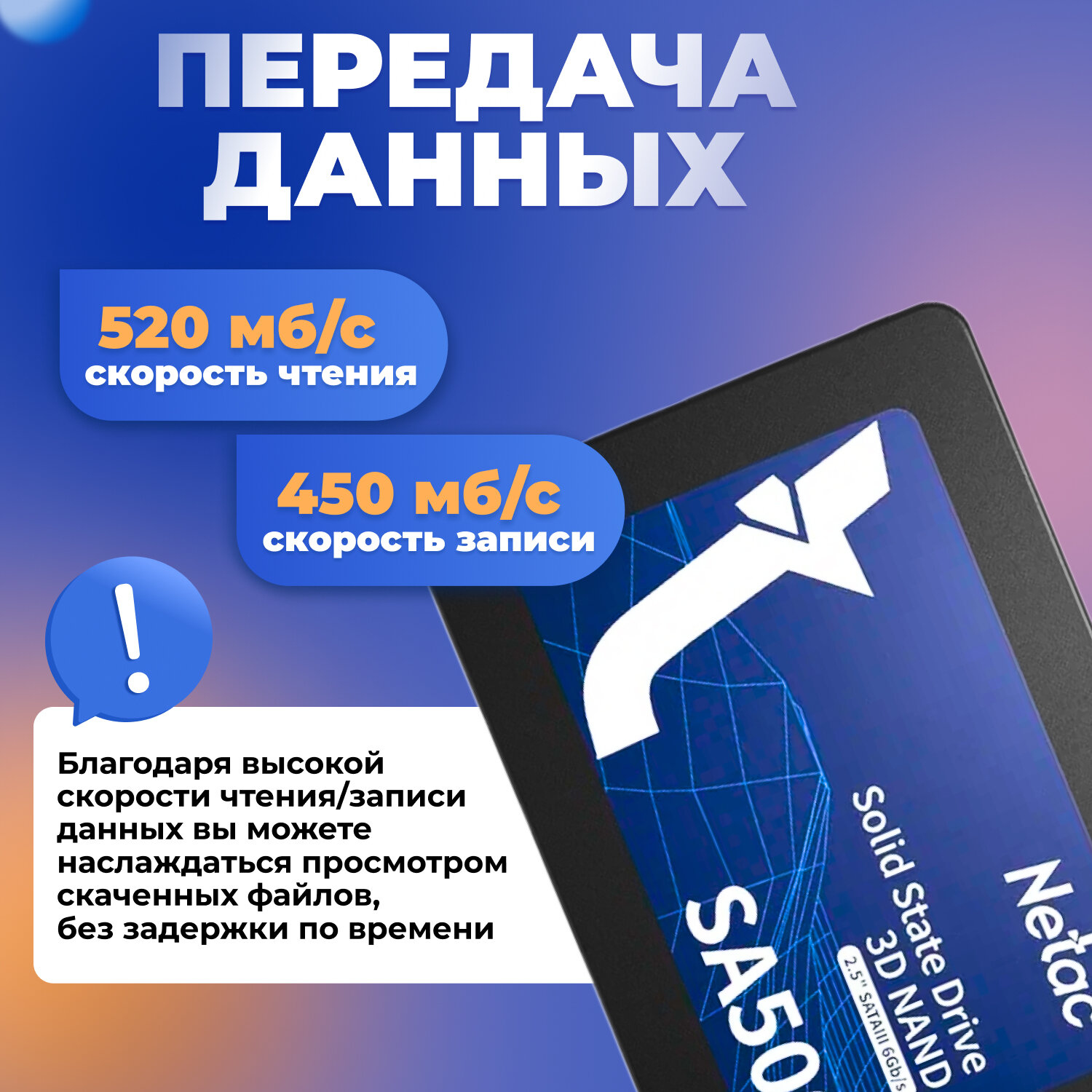Накопитель SSD 2.5'' Netac NT01SA500-240-S3X SA500 240GB SATA 6Gb/s TLC 3D NAND 520/450MB/s