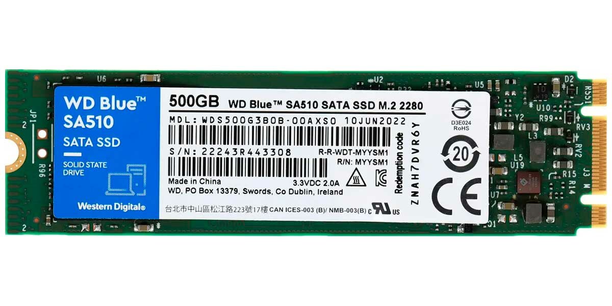 Western Digital SSD Blue SA510 500Gb M2.2280 Sata III Wds500g3b0b, 1 year