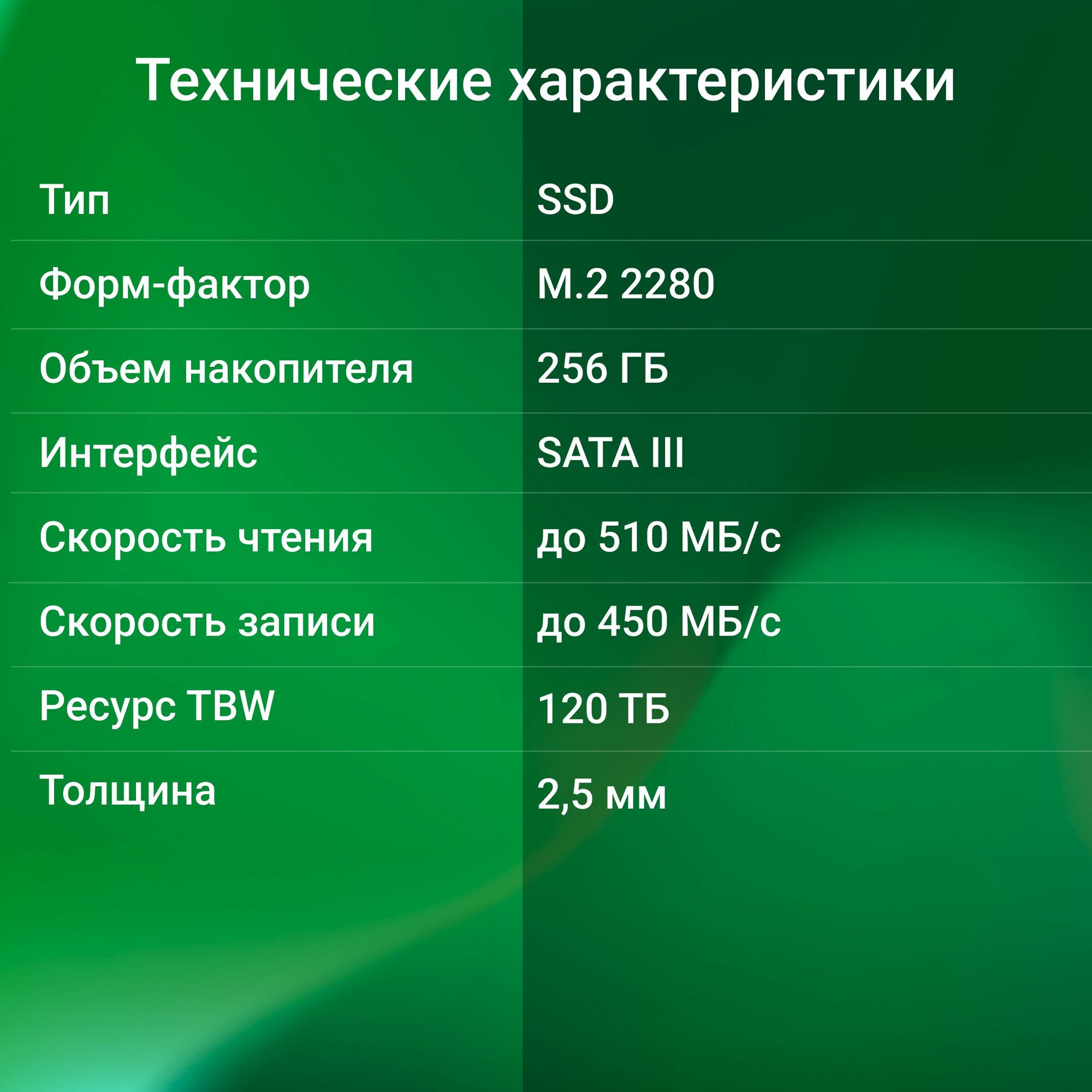 | Суммарное число записываемых байтов (TBW) | 120 ТБ |