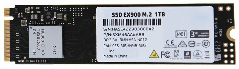 SSD диск HP EX900, M.2 (80 мм) NVMe 1.3 PCIe Gen3 x4, 3D NAND TLC, 1 Тб (5XM46AA)