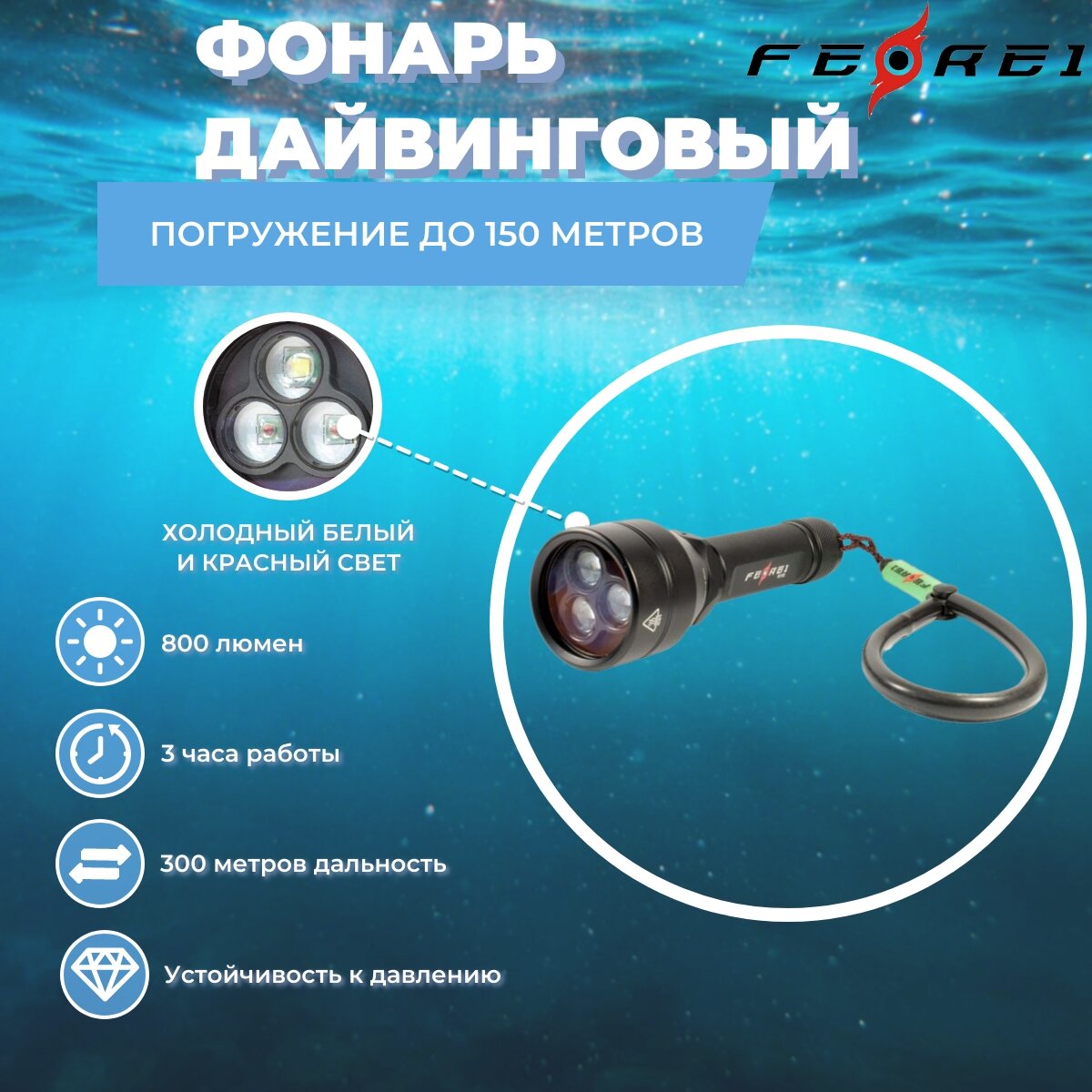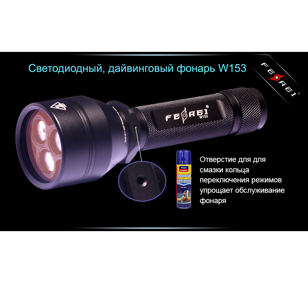 Фонарь для дайвинга Ferei W153 1хCREE XM-L (Cool White) 2xCREE XP-E (Red) (W153V20) интересное: