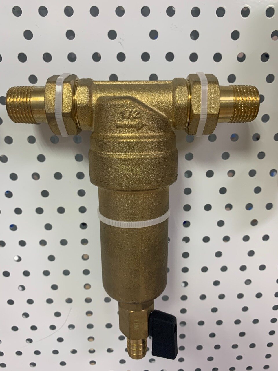Фильтр самопромывной - 1/2" промывной для отопления, для горячей и холодной воды, без манометра, латунная колба TIM JH-1003