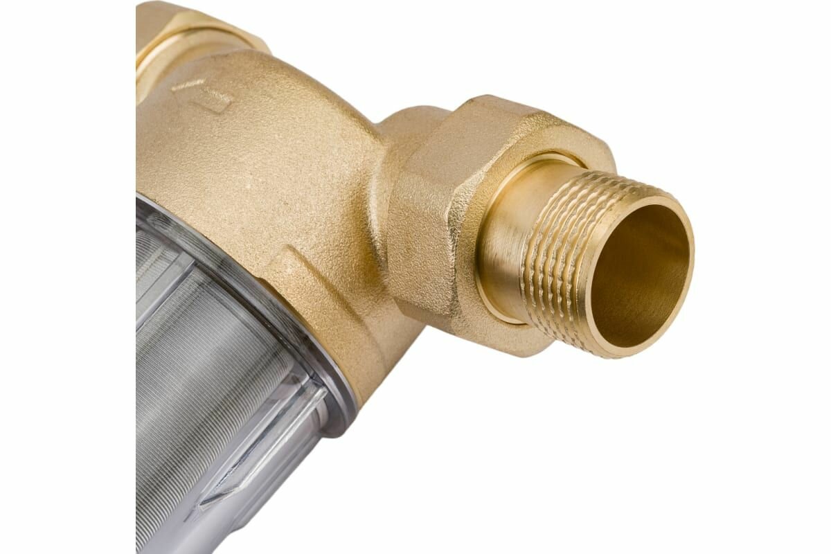 Магистральный фильтр для горячей воды самоочищающийся промывной латунный 1/2", 100 микрон, с манометром AV Engineering (AVE115701)