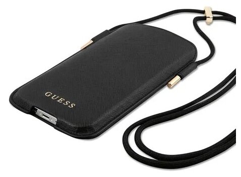 Guess для смартфонов чехол Pouch PU Saffiano 4G Black (L size, IP12PM), шт интересное: