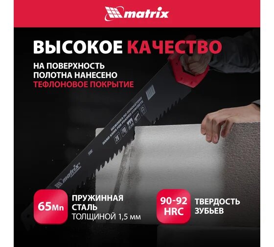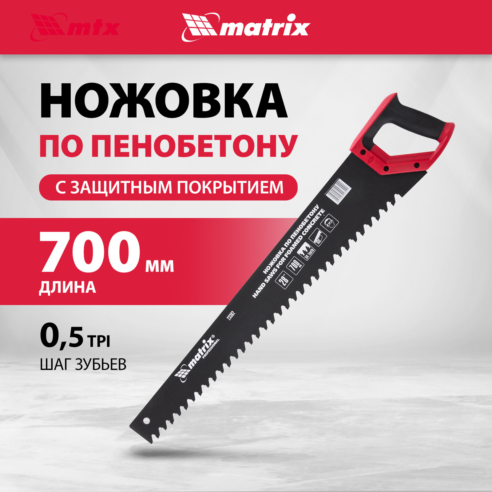 Ножовка по пенобетону, 700 мм, защитное покрытие, твердосплавные напайки на зубья, двухкомпонентная рукоятка Matrix