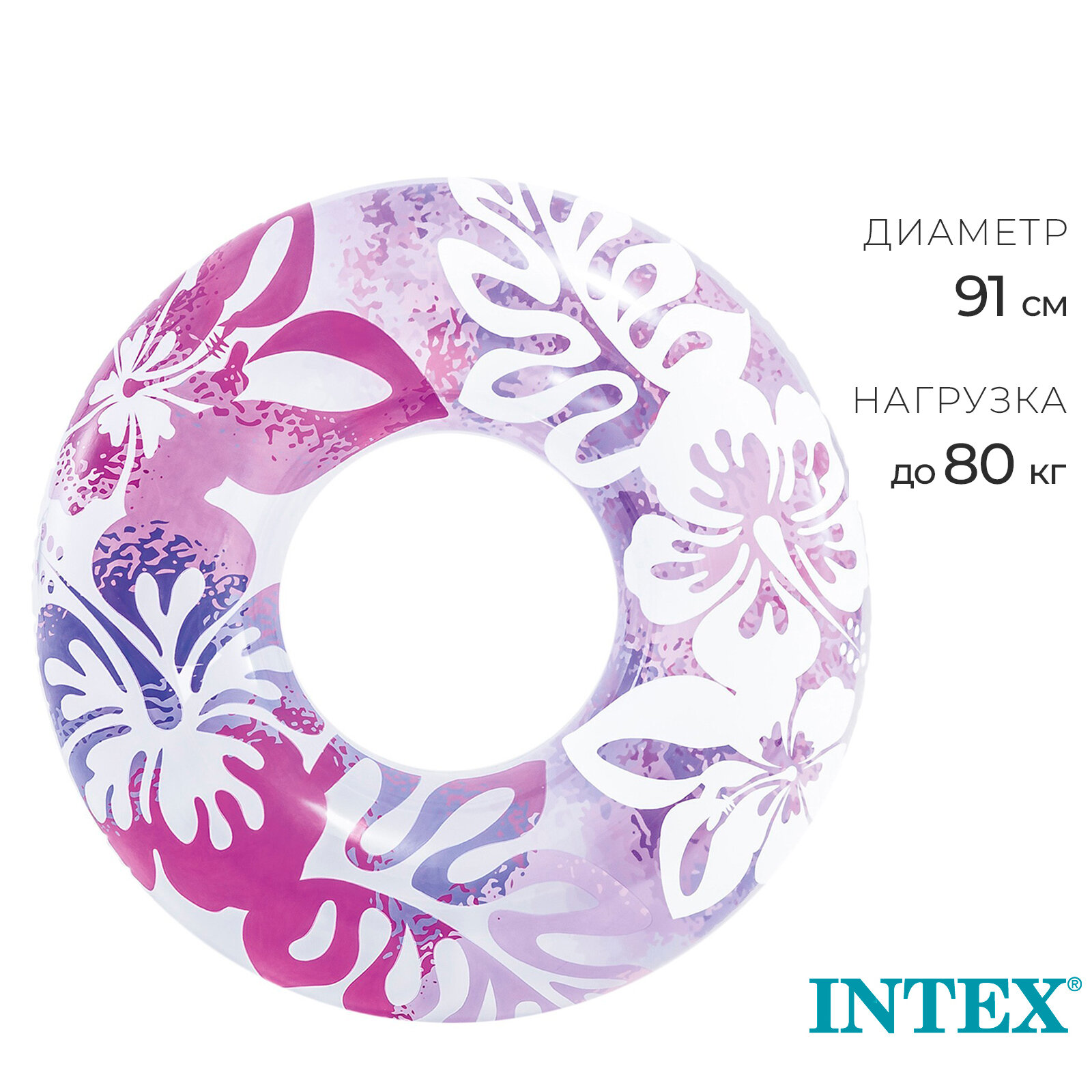 Круг для плавания Intex 59251 "Clear Color Tubes" 91см 9+ сиренево-фиолетовый интересное: