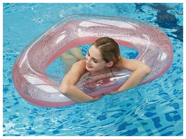 Пляжный надувной круг для плавания Сердце с блестками, розовое золото 120 см интересное: