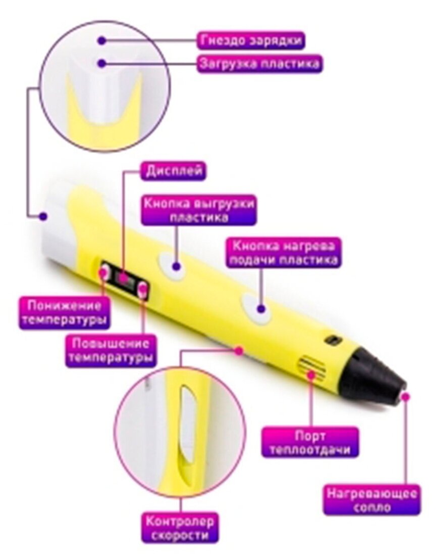 Комплект 3Д ручка NIT-PEN3 желтая + пластик PLA 10 цветов по 10 метров, в упаковке: 1