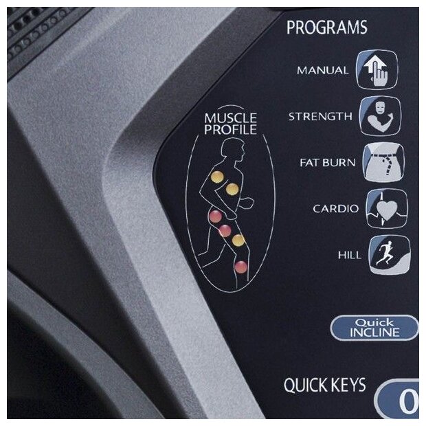Есть опция изменения угла наклона полотна от 0 до 15 уровней, регулировка электронная. Максимальная скорость полотна – 20 км/ч. Есть динамики и аудиоразъем, подставка под бутылку, ключ безопасности, встроенный вентилятор, транспортировочные ролики. Дисплей 9 дюймов с хорошей читаемостью, имеет подсветку. |