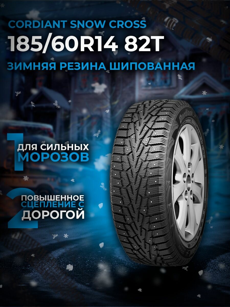 Купить Шины для легковых автомобилей Cordiant Snow Cross R14 185/60 82T шип