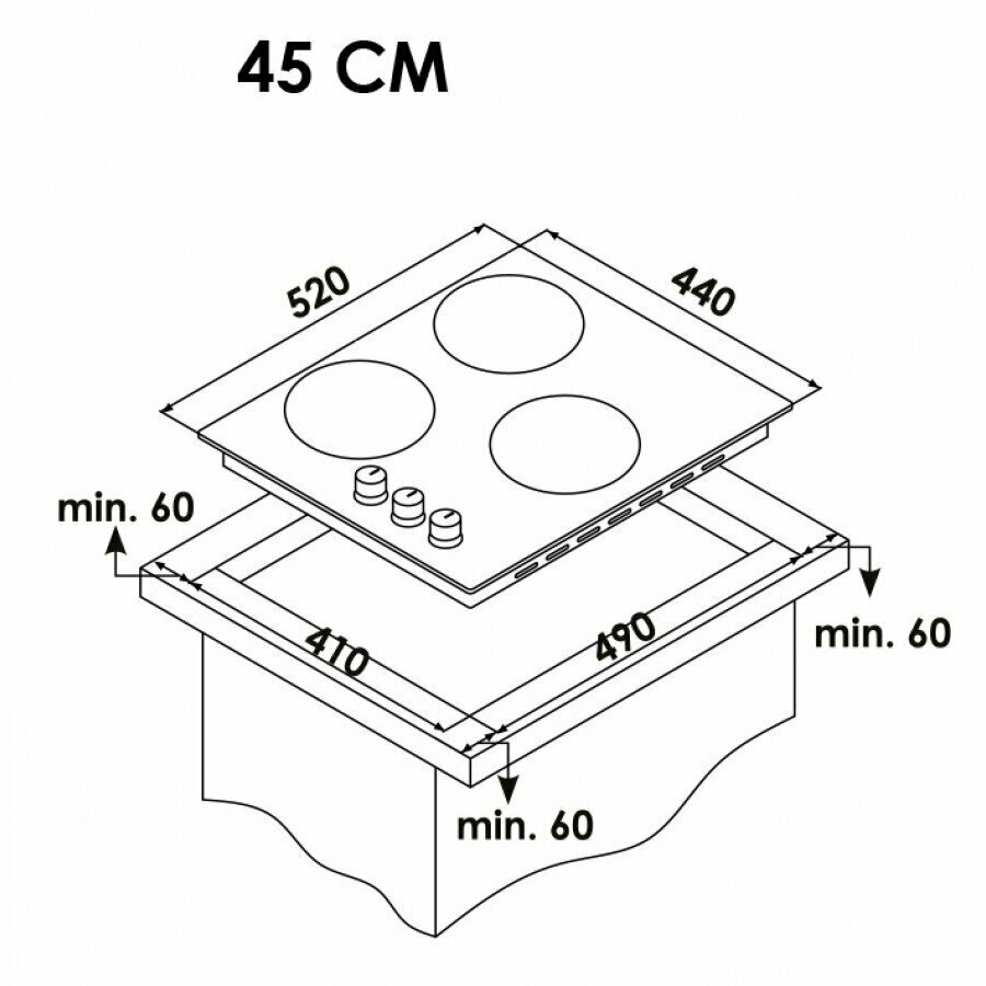 | Плюсы: | Компактная 45 см ширина, 3 конфорки, невысокая присоединительная мощность по сравнению с аналогами. |