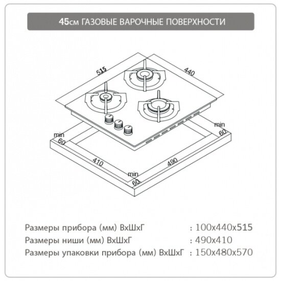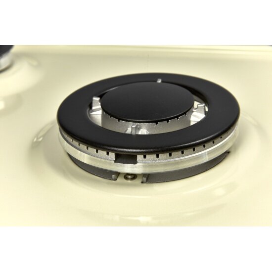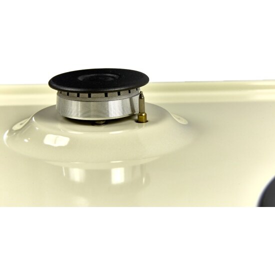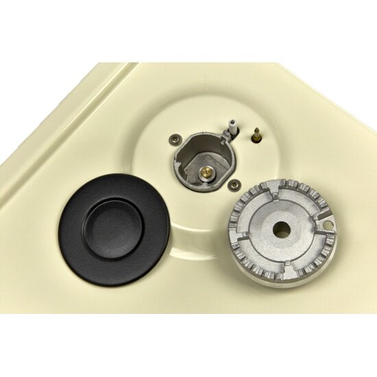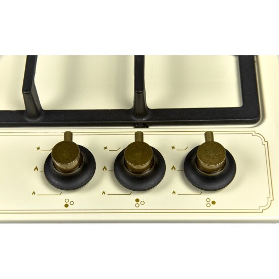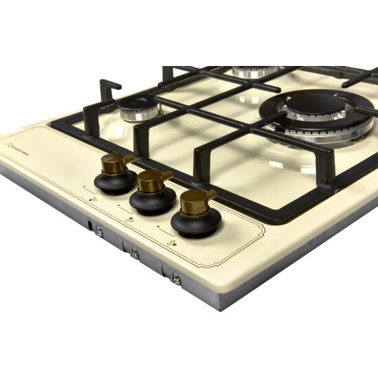 Газ, 45 см, газовая, 3 конфорки, независимая, автоподжиг, газ-контроль, кольцо для посуды WOK, чугунные решетки, жиклёры для баллонного газа, бежевая, рустик