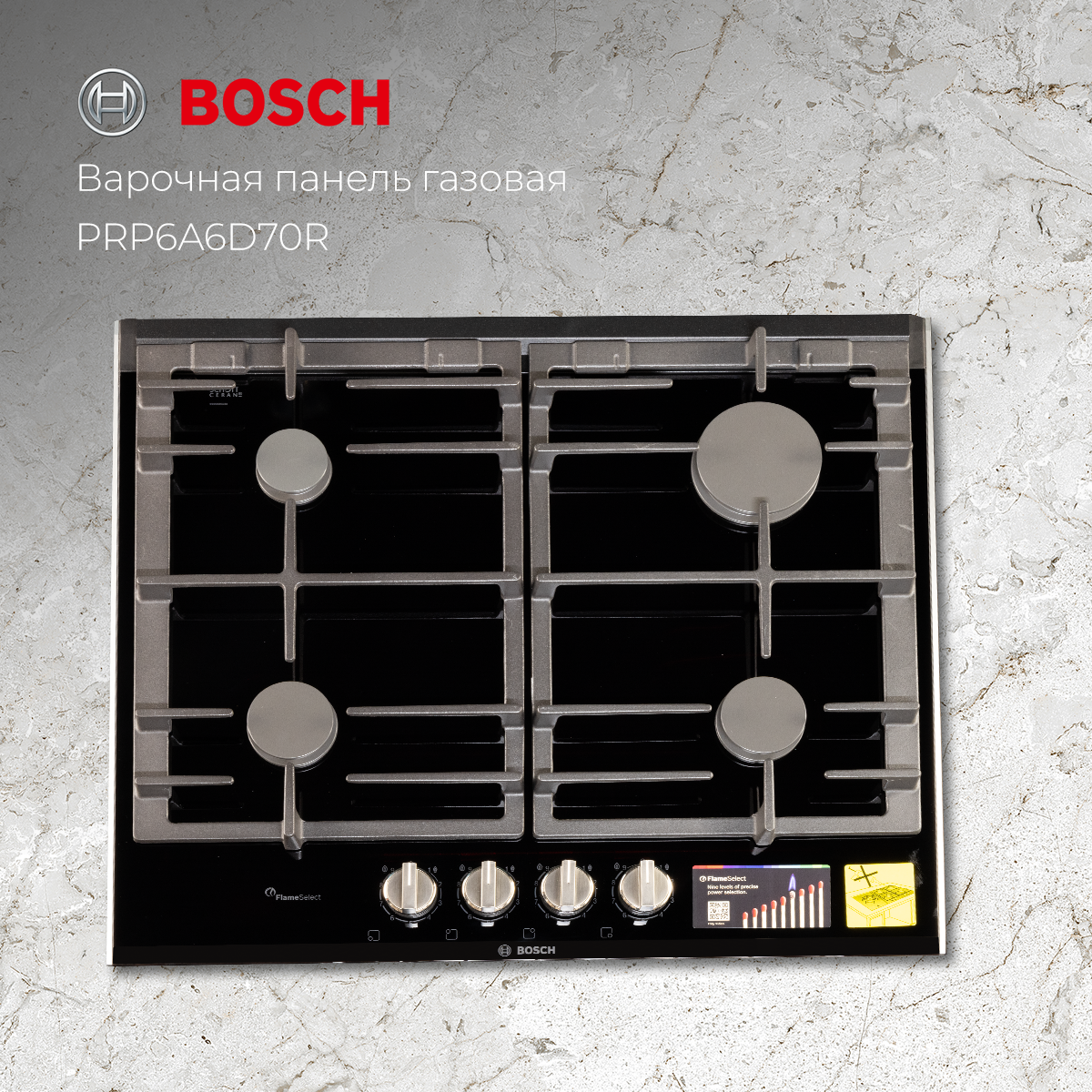 Газовая варочная панель Bosch PRP6A6D70 интересное: