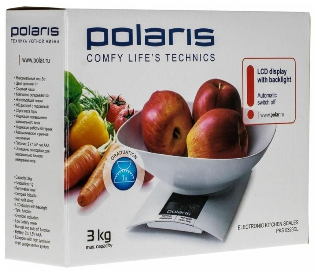 весы кухонные POLARIS PKS0323DL до 3кг электронные белый
