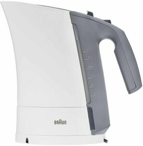 Чайник BRAUN WK-300, закрытый нагревательный элемент, объем 1,7 л, мощность 2200 Вт, индикатор уровня воды, белый
