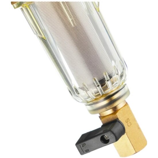 | Минусы: | Промывка через шаровой кран не работает, чтобы смыть ржавчину с сетки нужно откручивать колбу. |