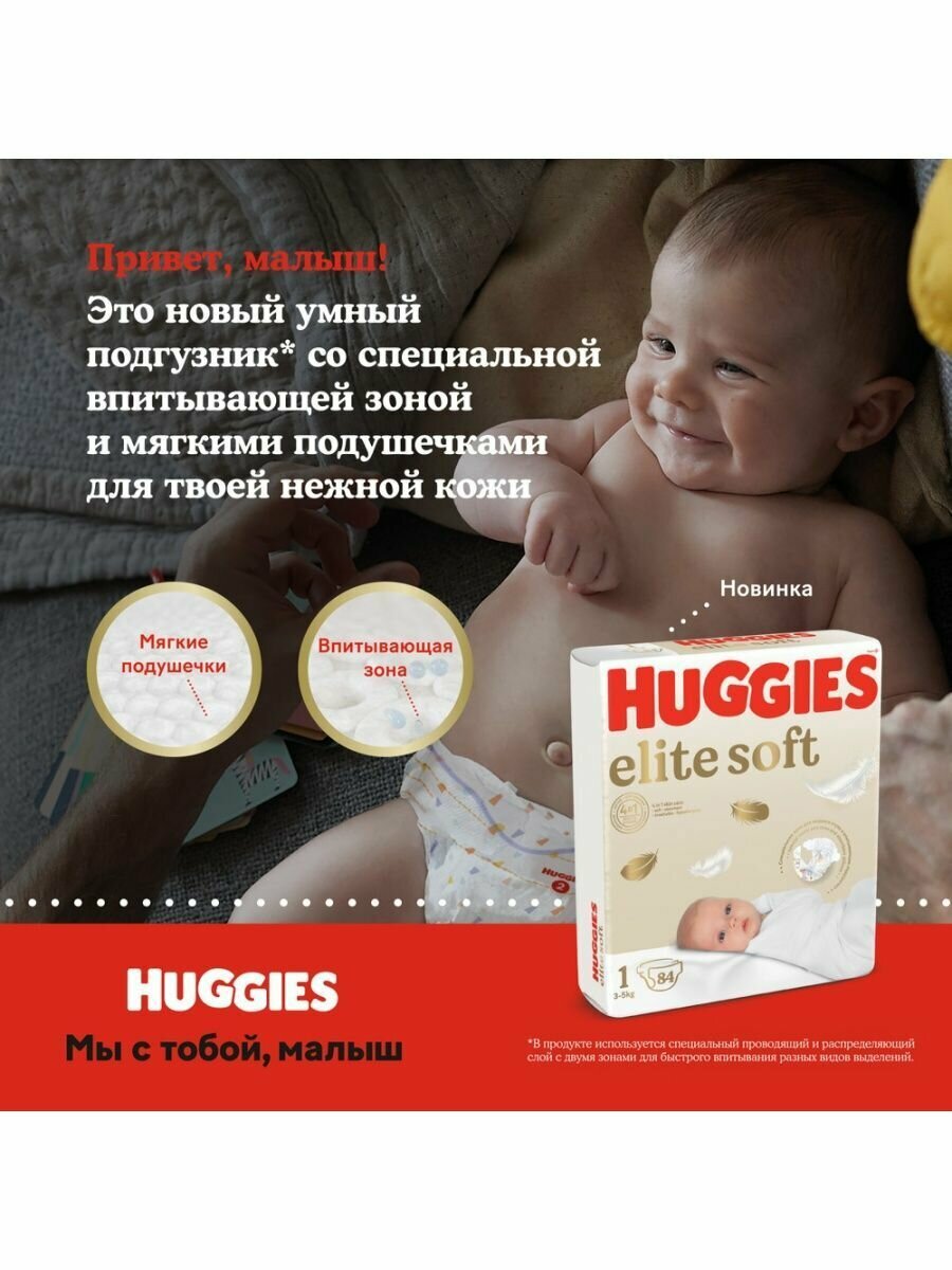 Huggies подгузники Elite Soft 3 (5-9 кг), 72 шт., 72 шт., 3, 5 - 9 кг